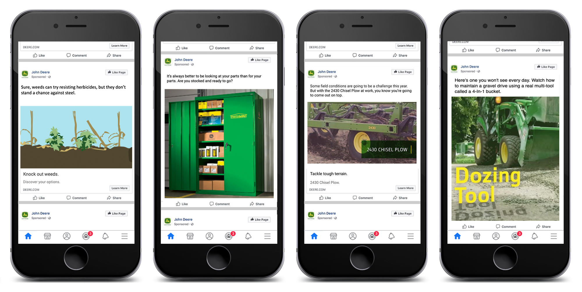 With John Deere, we refreshed the brand through direct mail campaigns, branding campaigns and marketing pushes to web and social.